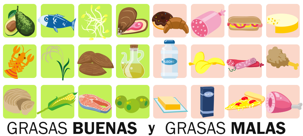 El tipo bueno de grasas son las monoinsaturadas y poliinsaturadas. Estos son los mejores tipos para el cuerpo humano. Se encuentran principalmente en la carne y los productos lácteos. Estos tipos de grasas tienen más calorías que las grasas no saturadas. Estos tipos son los que desea evitar. ¡Pero no te preocupes! Son el tipo saludable de grasas que debe comer. Los buenos son el omega 3 y el omega 6.